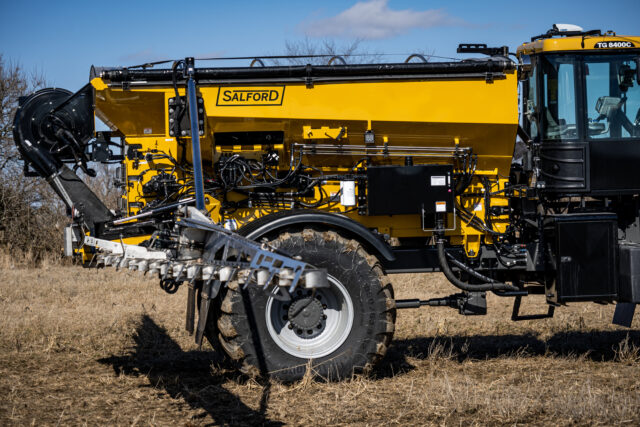 6700 AGCO Salford’s next-generation air boom applicator offers versatility, precision application and efficiency all in one complete package. Featuring Salford’s Valmar air boom technology, this self-propelled chassis mounted air boom offers a 90-foot application width with one of the largest hoppers on the market. This design offers greater capacity for fewer fill-ups, an easy-to-operate metering system and the most advanced air boom system available on the market today. The 6700 is ideal for broadcast application of granular fertilizer, granular chemicals, cover crops and micro-nutrients.