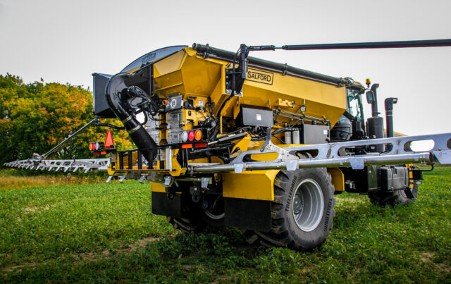 6700 AGCO Salford’s next-generation air boom applicator offers versatility, precision application and efficiency all in one complete package. Featuring Salford’s Valmar air boom technology, this self-propelled chassis mounted air boom offers a 90-foot application width with one of the largest hoppers on the market. This design offers greater capacity for fewer fill-ups, an easy-to-operate metering system and the most advanced air boom system available on the market today. The 6700 is ideal for broadcast application of granular fertilizer, granular chemicals, cover crops and micro-nutrients.